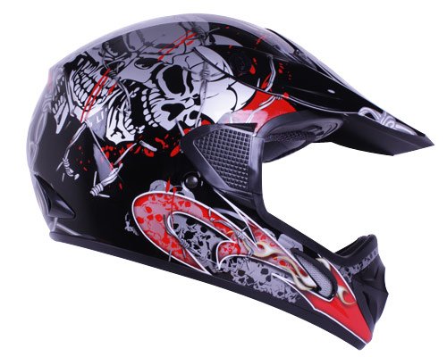 Black Red Skull Motocross ATV Open Face Helmet DOT (Large) Review
