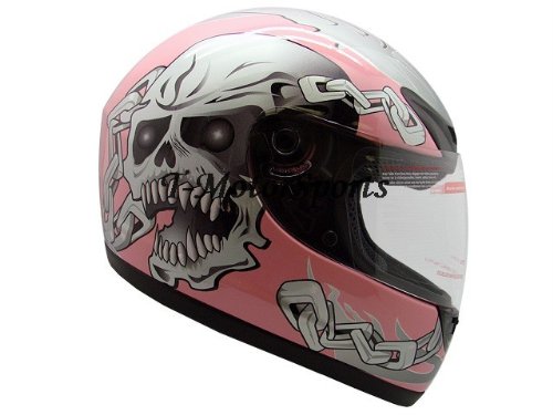 TMS Ladies Pink Skull Full Face Street Motorcycle Helmet (Small) Review